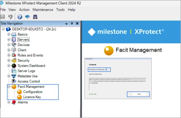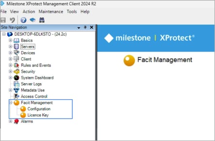 4. Open the Milestone Management Client. Facit plugins will now appear in the Site Navigation Panel.