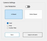 a. This setting determines the default redaction status for the selected user when they view the camera's live feed in the smart client.