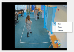 To permanently set a region in a camera view to be either redacted (blurred) or kept clear: